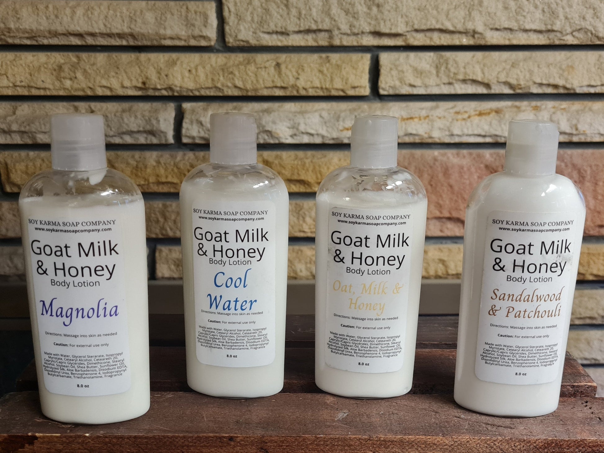This lotion is rich in vitamin C & contains other nutritious oils like sunflower seed oil, aloe vera, & jojoba oil. The lotion goes onto your skin smooth and creamy. It absorbs quickly and does not leave your skin feeling sticky. This lotion contains Goat’s Milk, Honey, and Shea Butter.